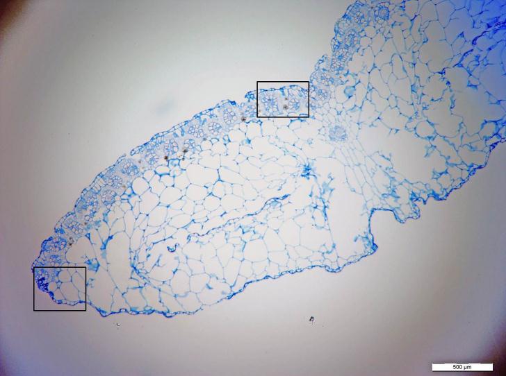 Foto 2 - Blutaparon portulacoides - Detalhe do corte transversal da lâmina foliar - Foto: Kelen Veiga